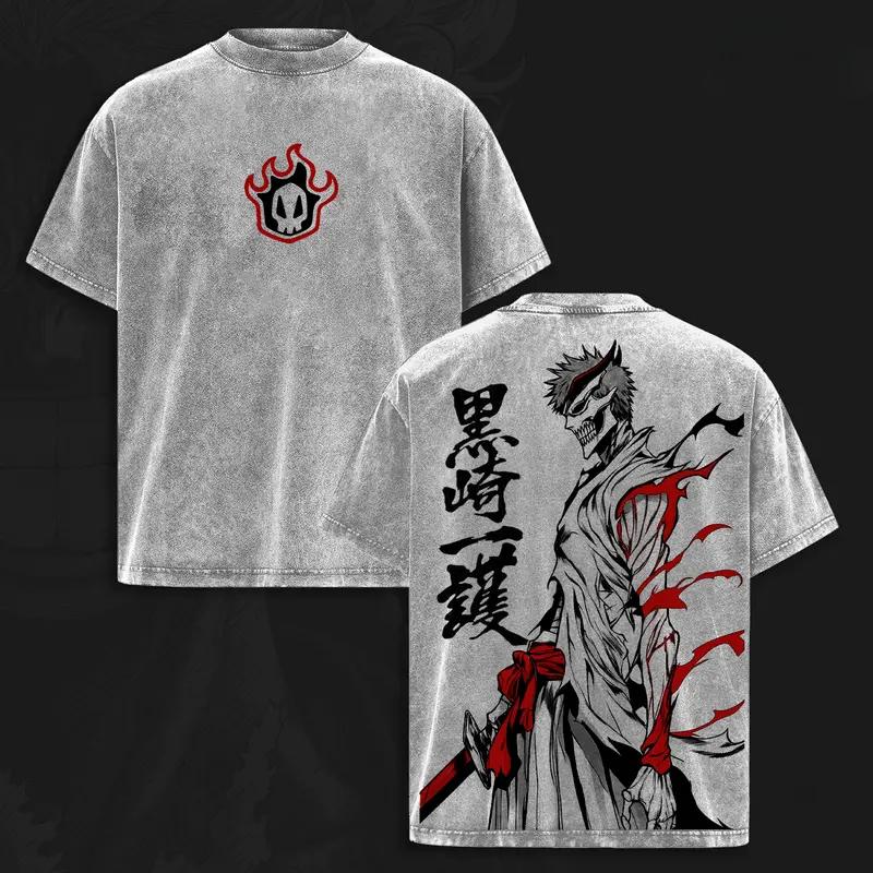 BLEACH Kurosaki Ichigo Manga T-shirt Anime Printed Vintage Washed Oversized T Shirt Summer Short Sleeve Cotton Tees Tops