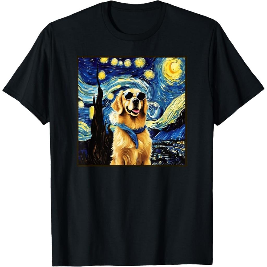 Van Gogh Starry Night Golden Retriever Dog Lovers shirt T-Shirt for Men Women Kids