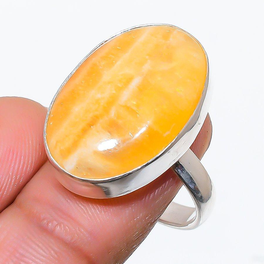 Yellow Septarian Gemstone Handmade 925 Sterling Silver Jewelry Ring Size 8 GK-4669