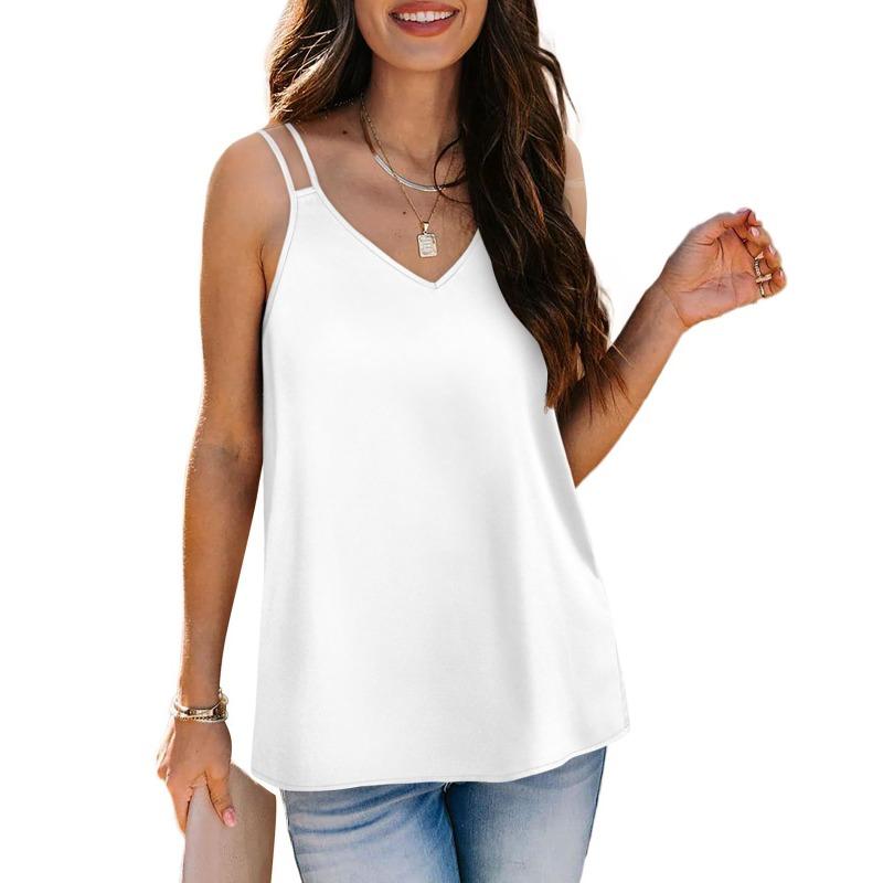Women's New Summer Solid Color V-neck Camisole Loose T-shirt Top