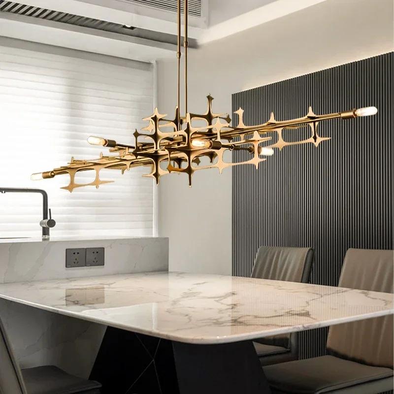 Nordic Light Luxury Restaurante Chandelier Personality Geometric Bar Pendant Light Stainless Steel Kitchen Lsland Hanging Lamp