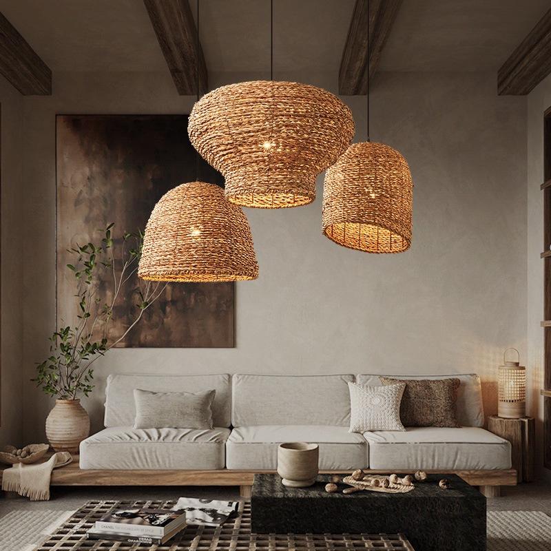 Vintage Wabi-sabi Style Pendant Lights High-quality Densely Woven Rattan Lamps for Living Room Dining Room Restaurant Loft Decor