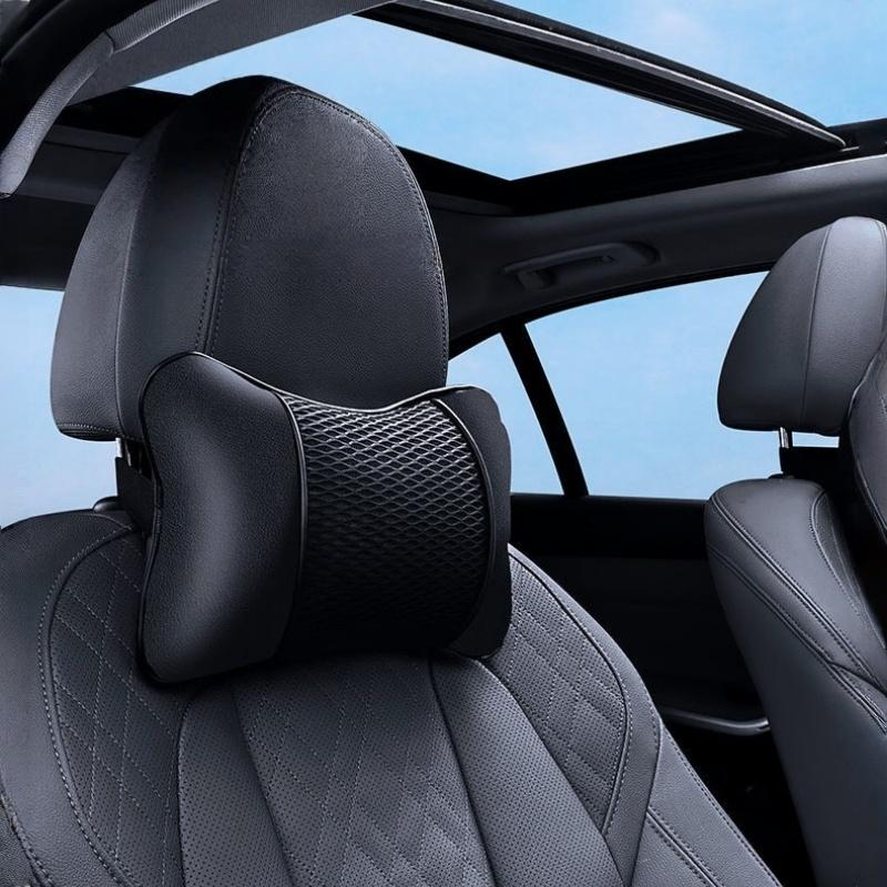 1pc Car Headrest PU Leather Mesh Breathable Neck Pillow - Soft, Comfortable Seat Rest Cushion for Neck Protection Accessories