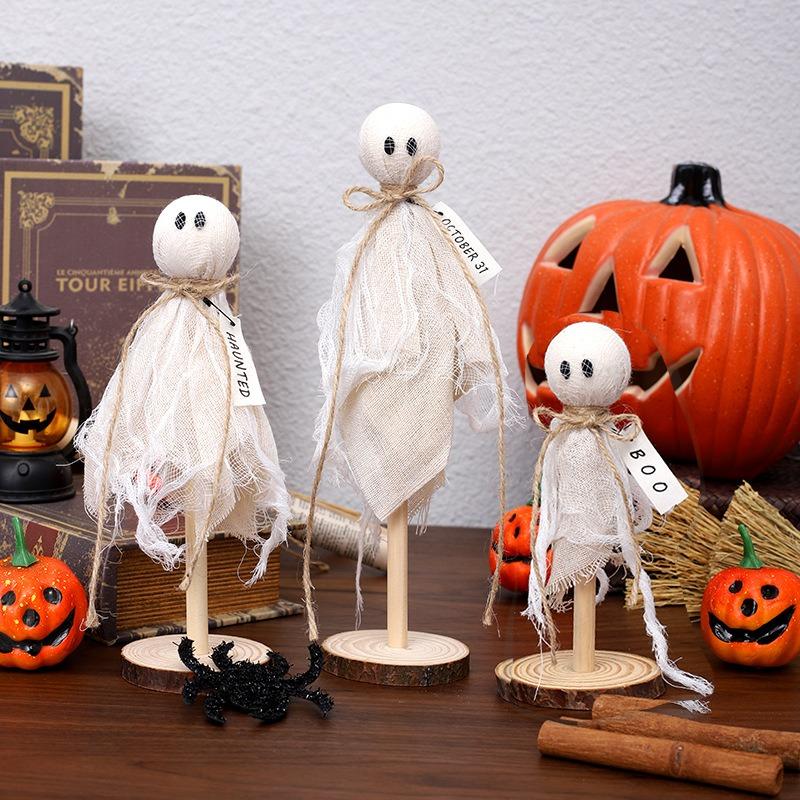 Halloween Decorations Indoor - Set of 3 Primitive Halloween Ghosts Dector on Wooden Stand for Table Centerpieces, Shelves