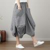 Damska bawełniana lniana luźna spódnica w dużym rozmiarze z elastyczną talią letnia spódnica w kratę z nieregularnymi kieszeniami w stylu lampionu