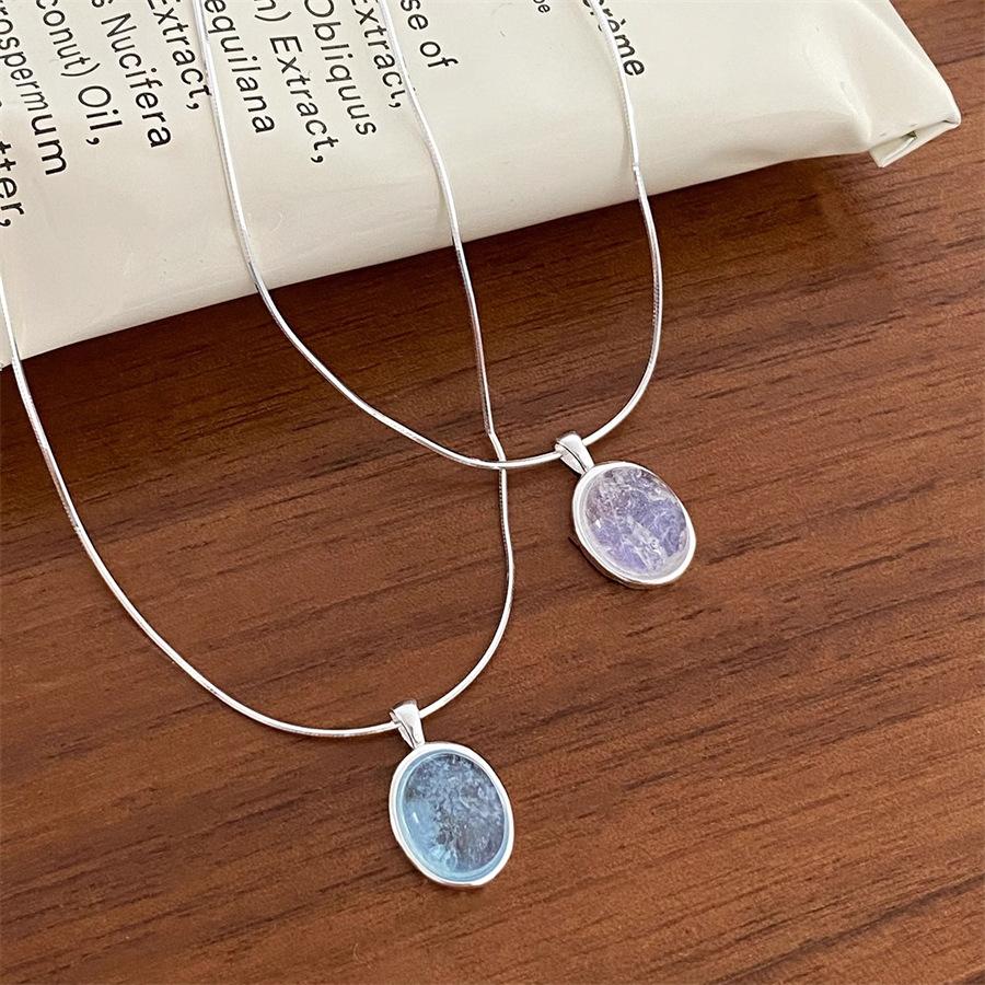 Kamień Księżycowy Akwamaryn Owalny Wisiorek Damski Naszyjnik Łańcuszek na obojczyk Taki sam jak na Xiaohongshu Styl ins Łańcuszek na szyję Modny
