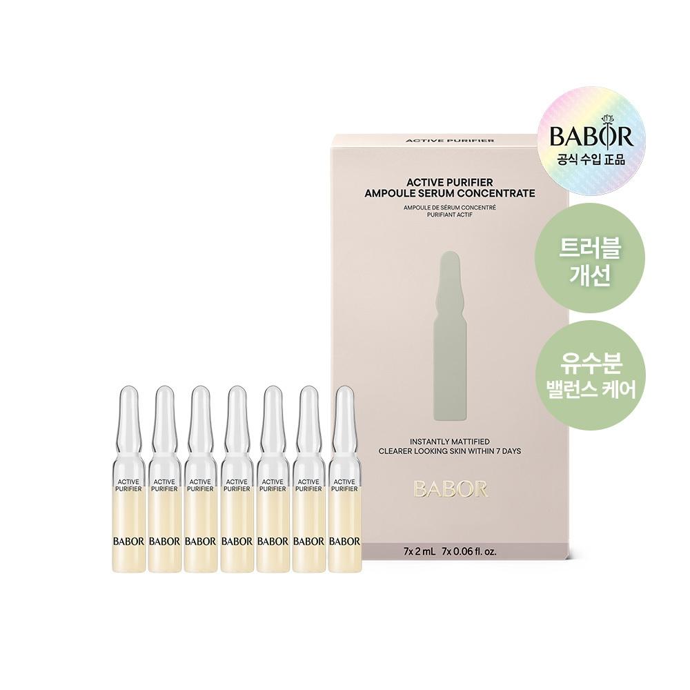 BABOR [Trouble Improvement] Ampoule Concentrate Active Purifier 2ml*7ea is part of the ampoule concentrate series aimed at improving skin troubles, consisting of 7 packs of 2ml ampoules designed for 7 days of intensive care. This product focuses on calming and purifying the skin, targeting issues like acne, blemishes, and excess sebum. It is a program that improves skin condition by using different effects of ampoules each day, and it is in a highly concentrated ampoule form that is quickly absorbed by the skin.