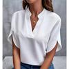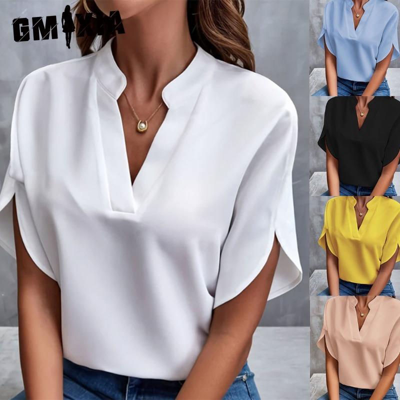 GMXIA Modne damskie bluzki i koszule na co dzień w jednolitym kolorze z krótkim rękawem i dekoltem w kształcie litery V