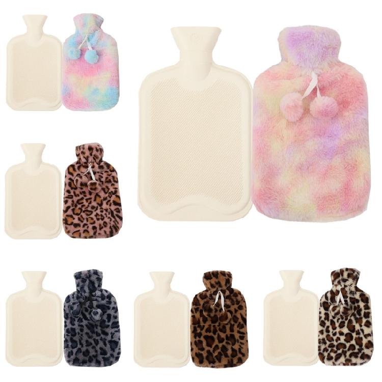Leopard printed plush hot water bottle, with insulating protective cover and plush balls, small, convenient to carry and does not take up space.