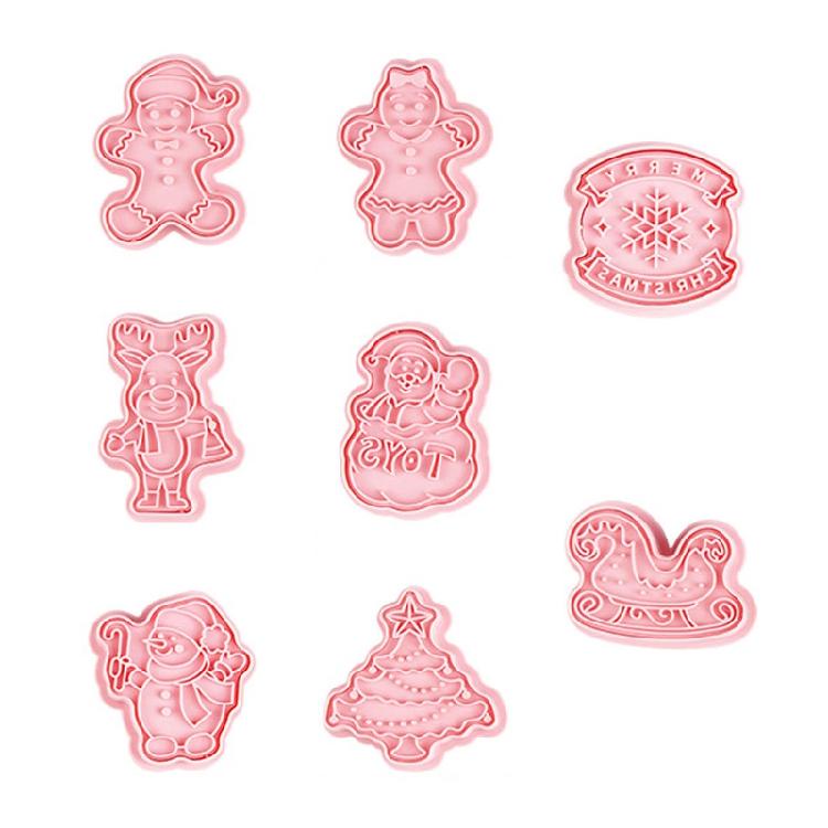 8-Piece Christmas Biscuit Molds Plastic Frosting Candy Fondants Push-type Moulds