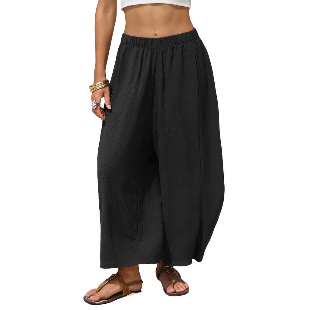 Damskie elastyczne spodnie z wysokim stanem, o swobodnym kroju, z szerokimi nogawkami, długie spodnie, spodnie z kieszeniami