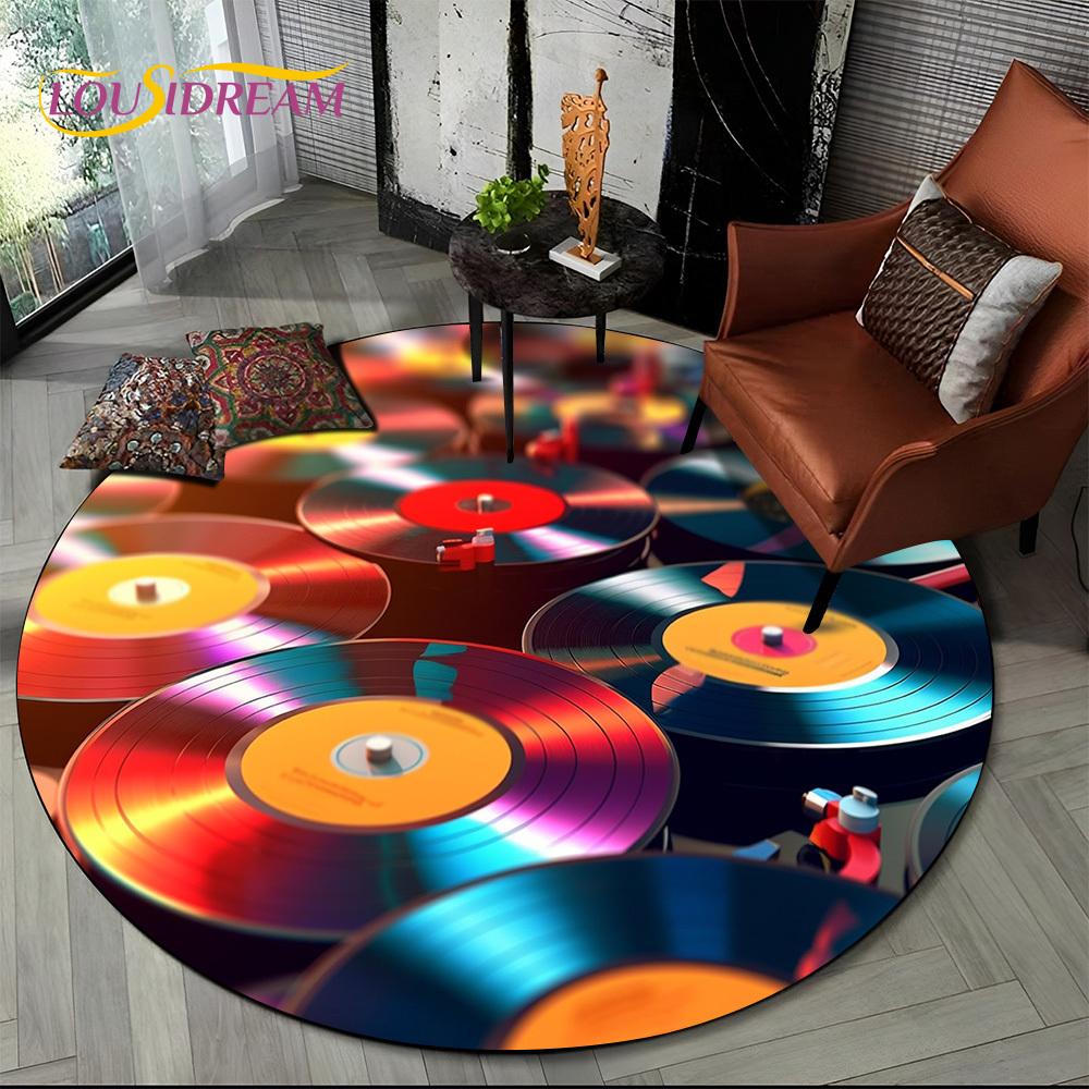 3D Vinyl Record Music DJ Screen Tape HD Round Area Rug,Carpet Rug for Living Room Bedroom Sofa Playroom Decor,Non-slip Floor Mat