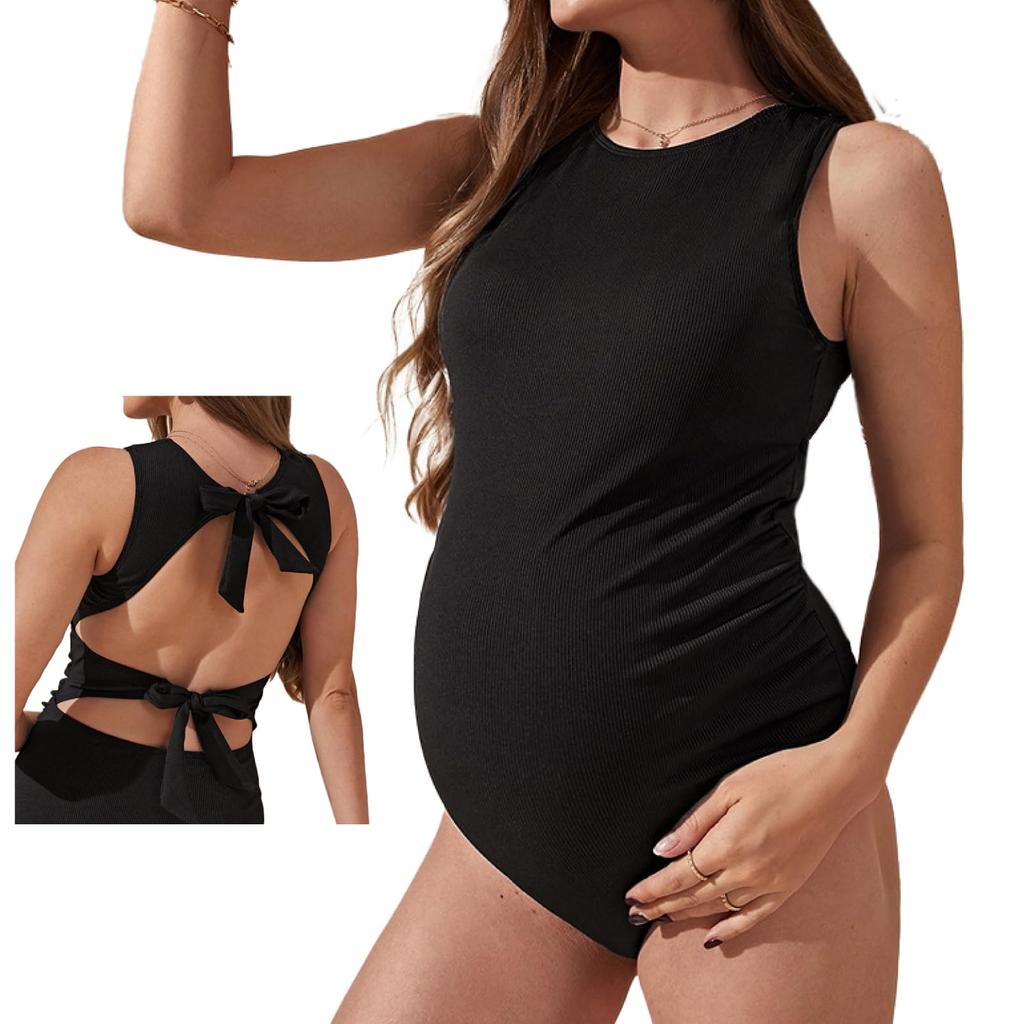 RONGUI Maternity Swimsuit, One-Piece, Pre- and Postpartum, Ribbon Monokini, for Full-Face Coverage (JP, Alphabet, L, Black)
