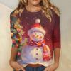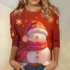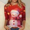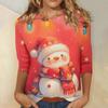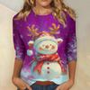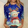 Ladies' Christmas Printed Fashionable Casual Seven Quarter Sleeved Round Neck Top