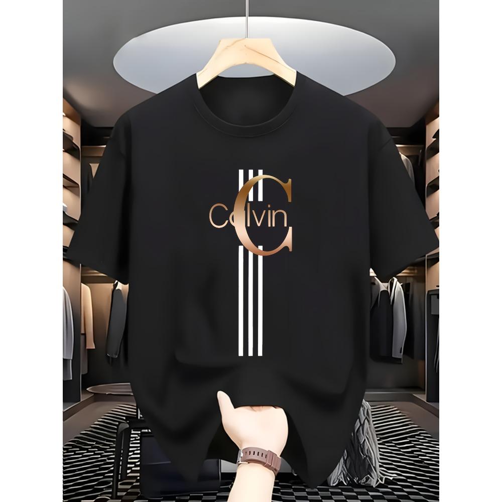 Europejskie rozmiary Męska Lekka Oddychająca Koszulka z Krótkim Rękawem - Letnia Casualowa z Okrągłym Dekoltem i Subtelnym Nadrukiem, Kolor (/), Można prać w pralce