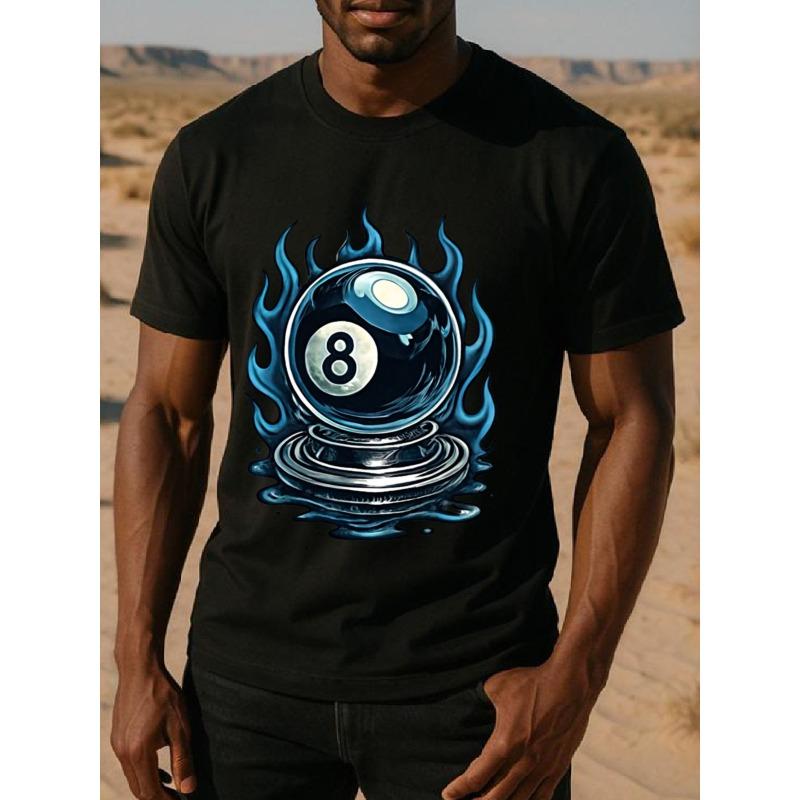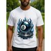 European sizes Men'S Flame 8 Billiards Graphic T-Shirt - with Flame & Number 8 Pool Print, Medium-Stretch Breathable Fabric