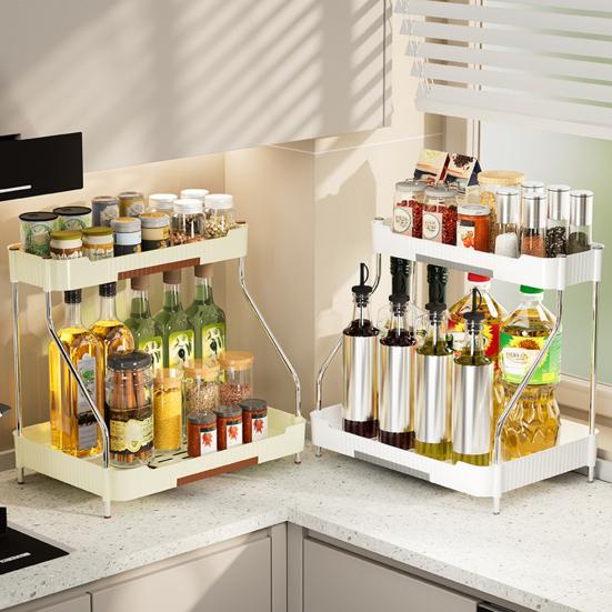 Maksymalizacja wielopoziomowego przechowywania: Przesunięta konstrukcja dwupoziomowa pozwala jednocześnie przechowywać wysokie butelki z olejem, średnie słoiki z sosami i małe pojemniki na przyprawy, eliminując bałagan na blacie w jednej zorganizowanej przestrzeni..