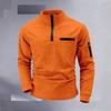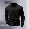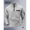 Men's Waffle Knit Quarter Zip Pullover Casual Stand Collar Long Sleeve Top With Zipper Pockets For Daily Wear