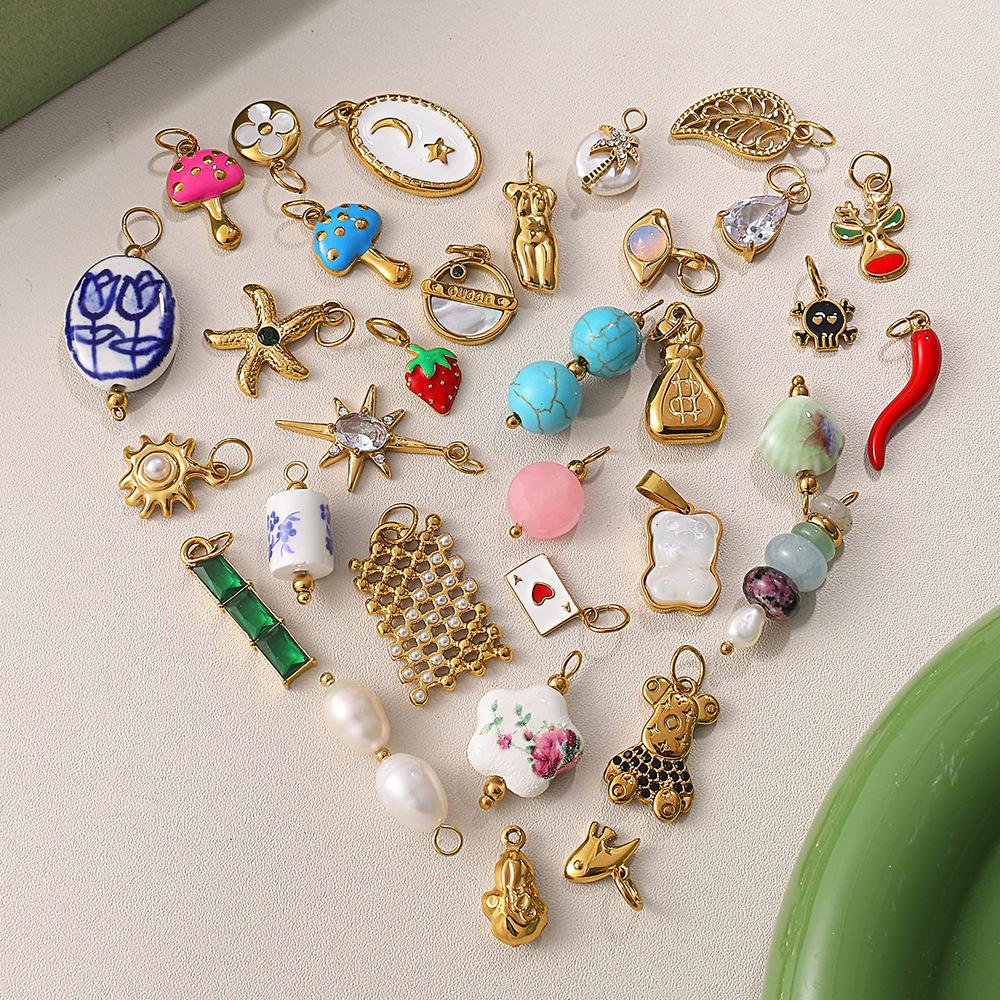 European and American creative colorful and diverse DIY pendant stainless steel plated 18K gold versatile pendant collection