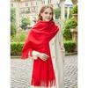 Czerwony szalik damski zimowy wysokiej klasy zagęszczony wełniany szalik wszechstronny męski szal jednolity kolor kaszmirowy szalik