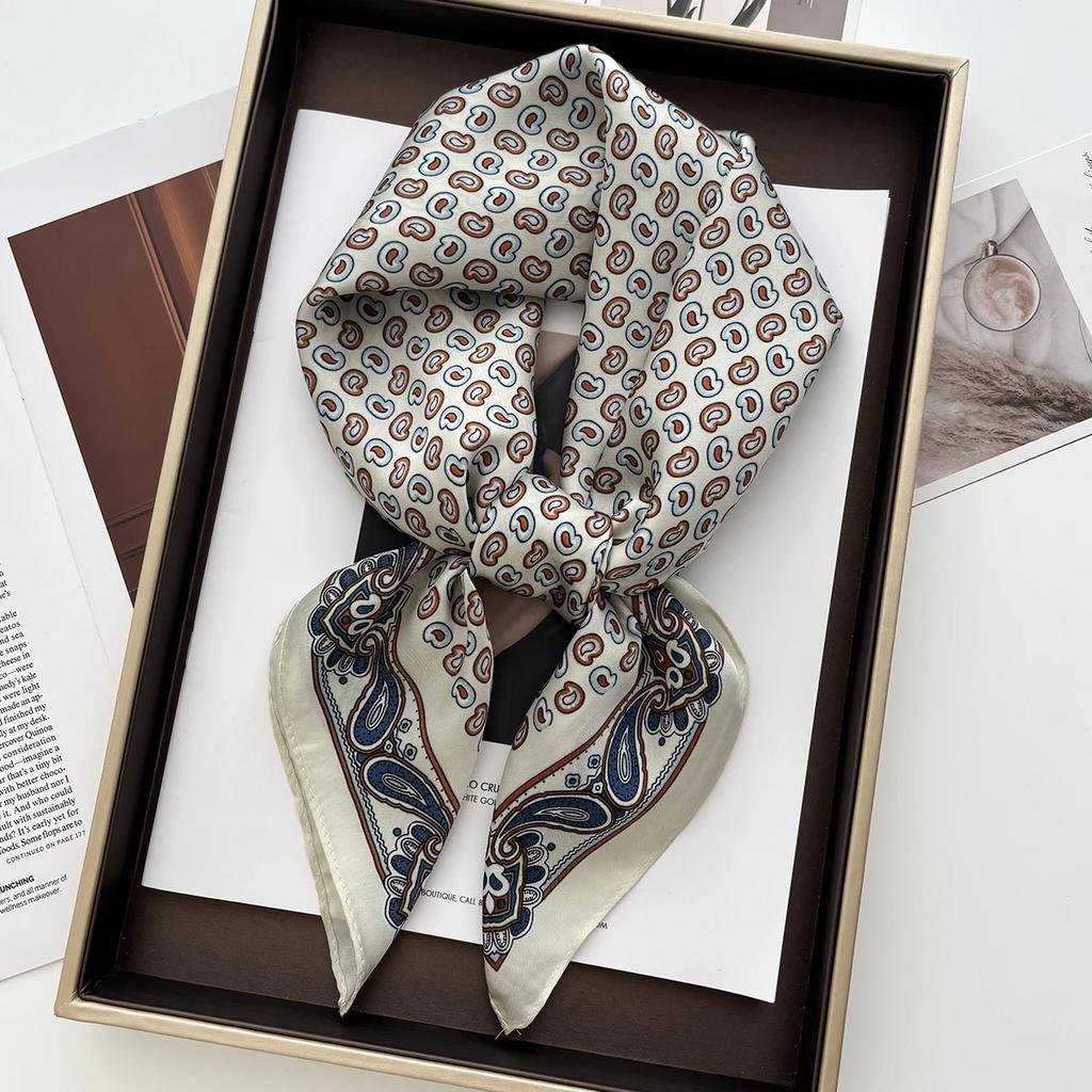 Luxury Floral Print Square Scarf Women Hijab Hair Bands Neckerchief Female Satin Shawl Ribbon Headband Fashion Wraps Bandana