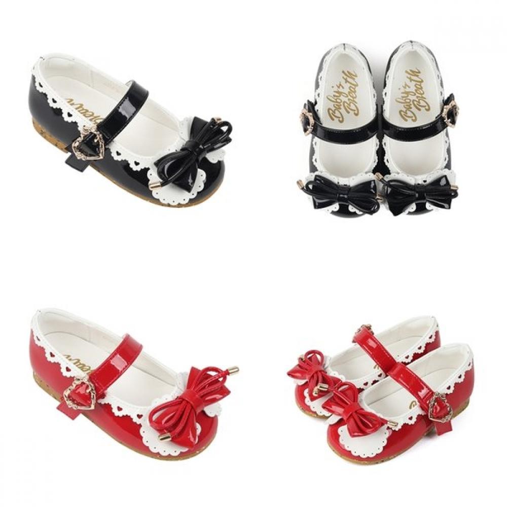 The Baby Bress Tobax Enamel Shoe Sara is a special enamel shoe for children, characterized by its soft leather material. It features a sophisticated gloss, providing stability and comfort for walking. The product combines cuteness and practicality with its toe decoration and flat loafer style.