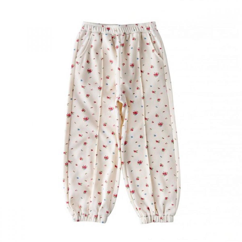 The Rulabi Waffle Flower Jogger Pants feature a soft waffle texture and a bright floral pattern, creating a casual jogger-style pant. Suitable for everyday wear as well as picnics and outings.