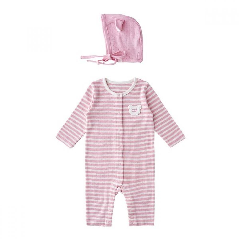 The Minkyu Mui Stripe SET baby suit includes a suit and a hat. Made with a striped fabric woven from cotton yarn and added with eyelet texture, it provides excellent moisture absorption and elasticity, offering a comfortable fit for active infants. The bear-shaped patch and hat serve as attractive points in this item.