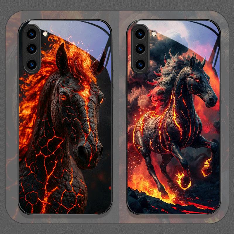 Kreatywne etui ze szkła hartowanego z wzorem czarnego konia i płomieni dla Samsung Galaxy S25 Ultra S24 S23 Plus S22+ S21 S20 FE 5G