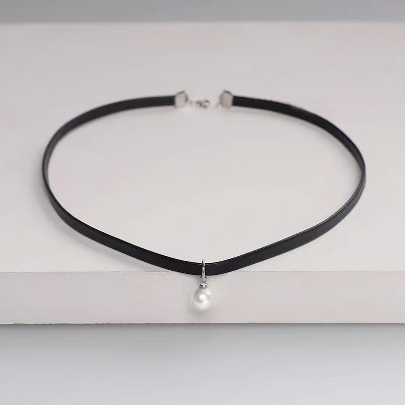 Chocker Pearl Collar Necklace Leather Rope Necklace Stainless Steel Metal Choker Collarbone Chain Neck