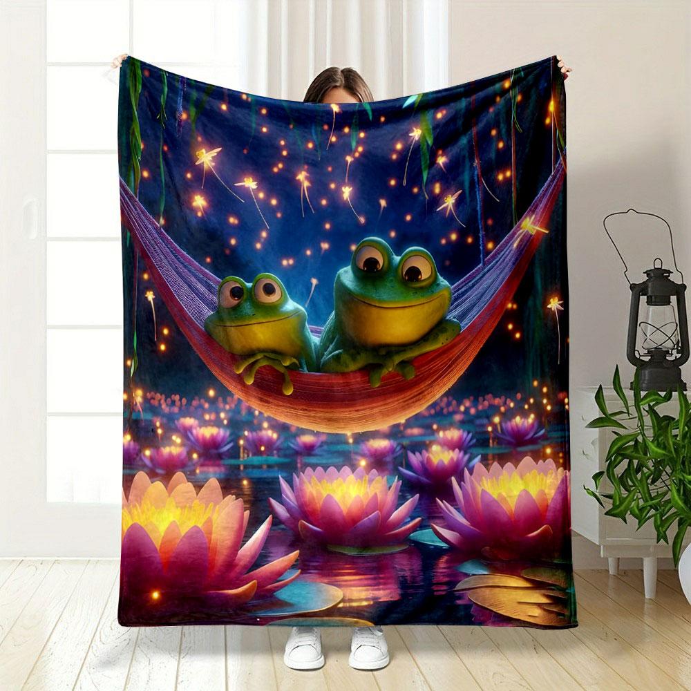 Cartoon Green Big Eyed Tree Frog Printed Blanket Festival Gift for Friends Family,Bedroom Living Room Sofa Chairs Bed Blanket