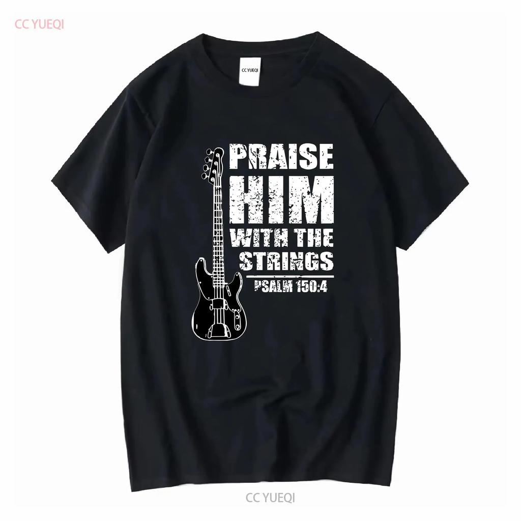 Praise Him With The Strings Christian Worship Bass Guitar Player Mens T Shirt vintage Washed Comfortable homme Unisex