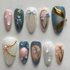24 SZT. Różowy Błyszczący Róż Aurora Francuskie Paznokcie na Doczepienie Słodki Cool Kok Gwiazda z Uroczy 3D Serce Perła Sztuczne Paznokcie Migdałowe Sztuczne Paznokcie