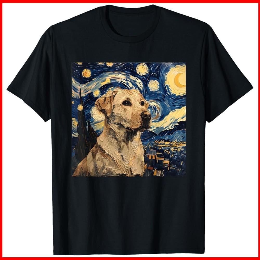 Labrador Retriever Dog Van Gogh Style Starry Night Black Cotton T-Shirt Unisex T-Shirt