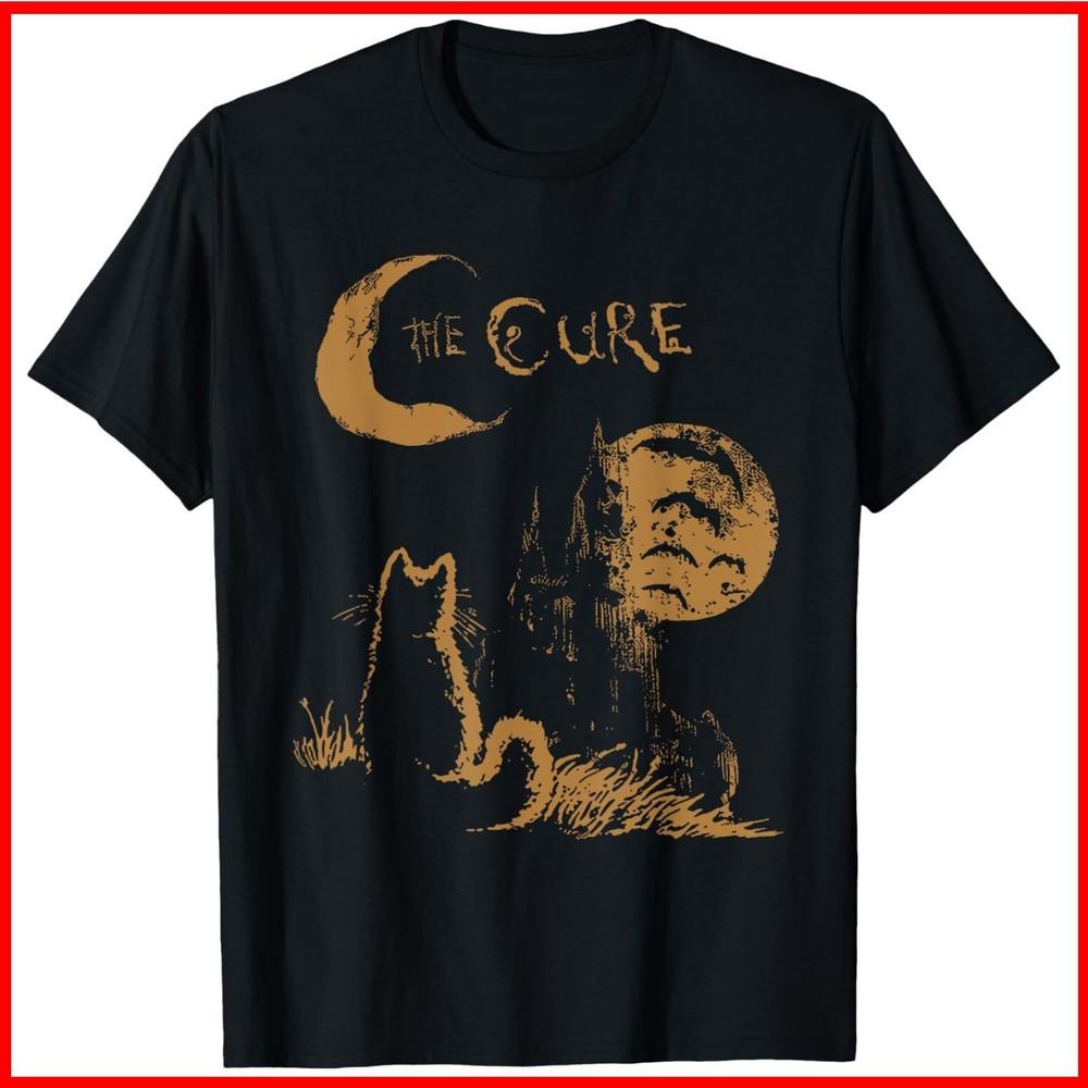 The Cure Vintage Cat Moon Funny The Cure Cat Lover Black Cotton T-Shirt Unisex T-Shirt