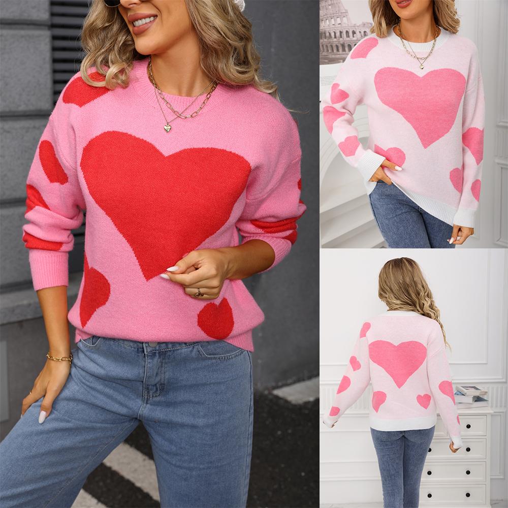 Ladies' Fashionable Heart-shaped Sweater, Loose And Versatile Valentine's Day Knitted Pullover Sweater