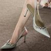 Women's pointed shallow mouth high heels summer buckle decoration fine high heels back buckle single shoes