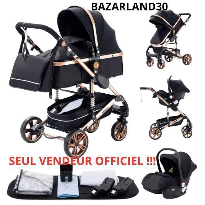 BAZARLAND30. Wózek wielofunkcyjny 3 w 1 Fotelik samochodowy Gondola Trio Odwracany Regulowany Wysoka Jakość Koła nieprzebijalne. Czarny i złoty
