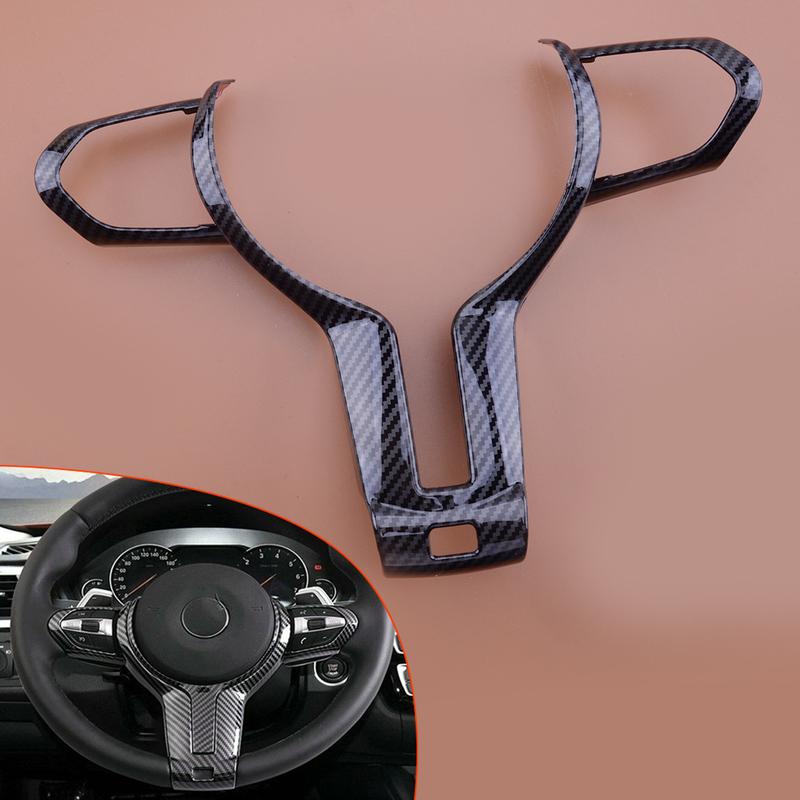 Front Steering Wheel Cover Trim Fit for BMW F22 F23 F30 F31 F34 F32 F33 F36 F10 F15 X5 F16 X6 2015-2017 Carbon Fiber Style ABS