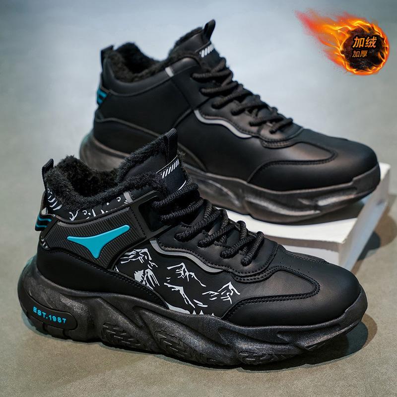 High-top shoes winter velvet warm cotton shoes casual sports leather surface waterproof non-slip heightening dad shoes
