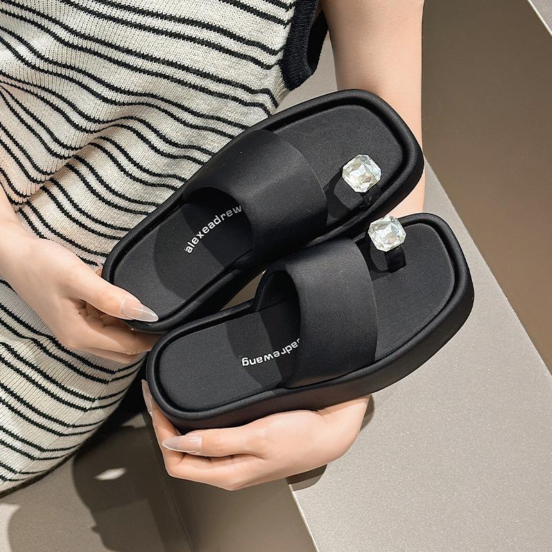 European fashion sandals women's summer new rhinestone toe slippers women's thick bottom heel heel heightening casual one-word drag