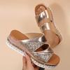 European and American large-size slope heel cool slippers summer new fish mouth buckle thick-soled glossy sandals