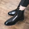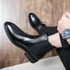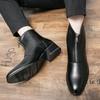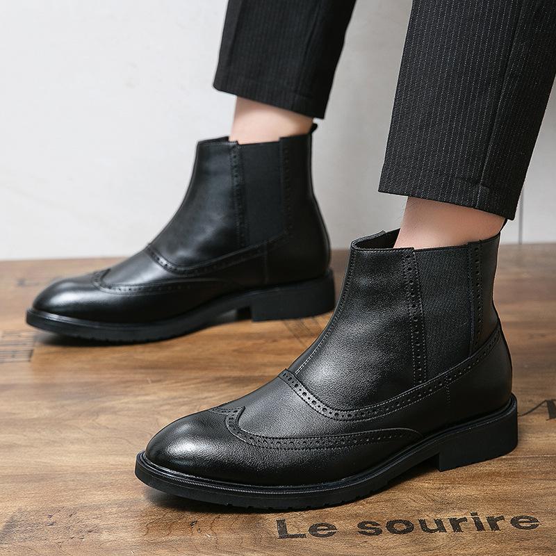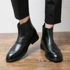 Martin Boots Leather Medium Top Pointed Fleece High Top Leather Shoes Chelsea Boots Black Hairstylist Short Boots