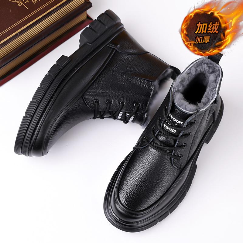 Snow boots winter velvet thickened high-top warm Martin boots non-slip dad cotton boots thick-soled leather boots