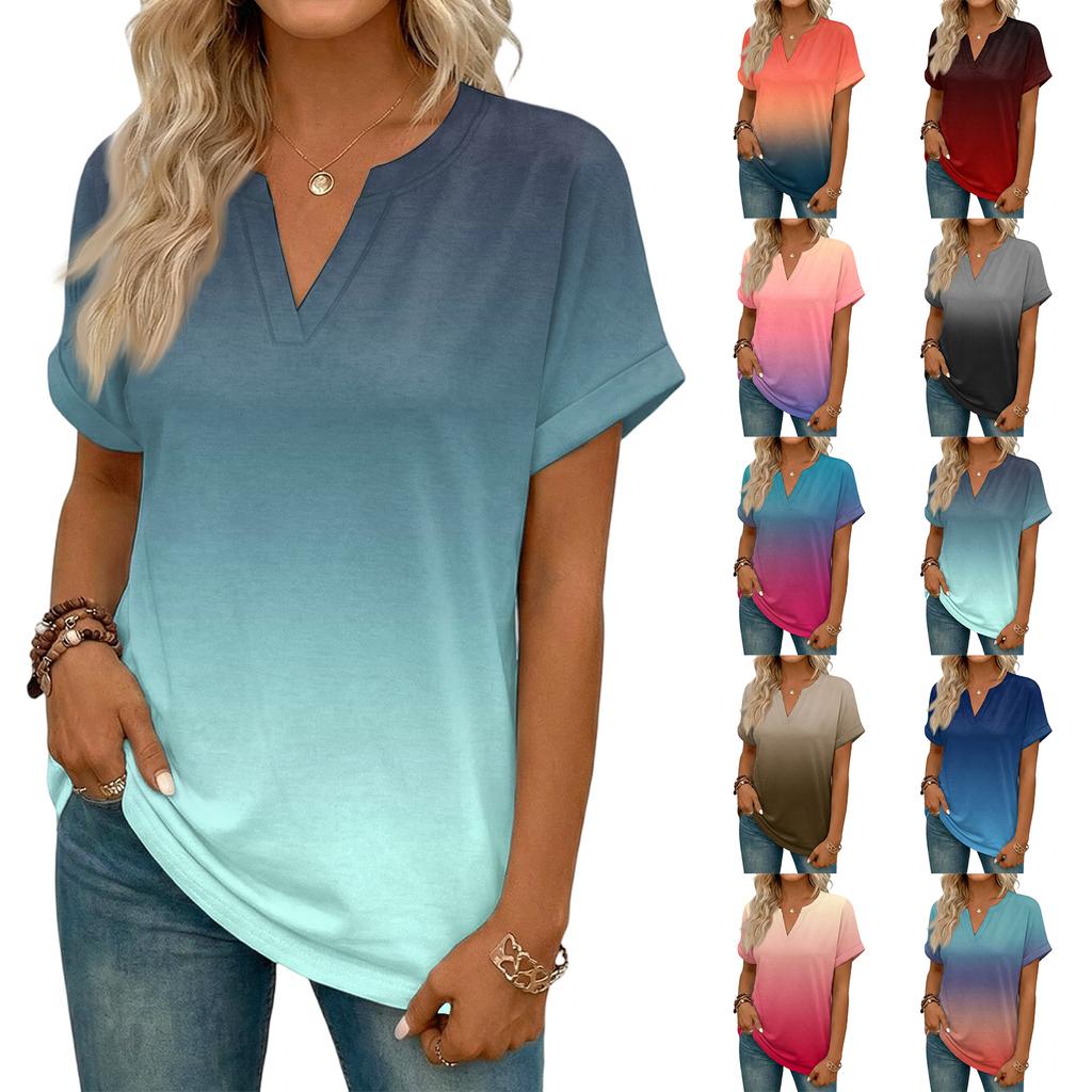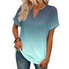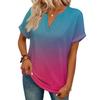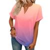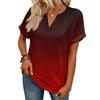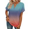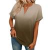 Modny Damski Casualowy T-shirt z Dekoltem V, Krótkim Rękawem i Gradientem