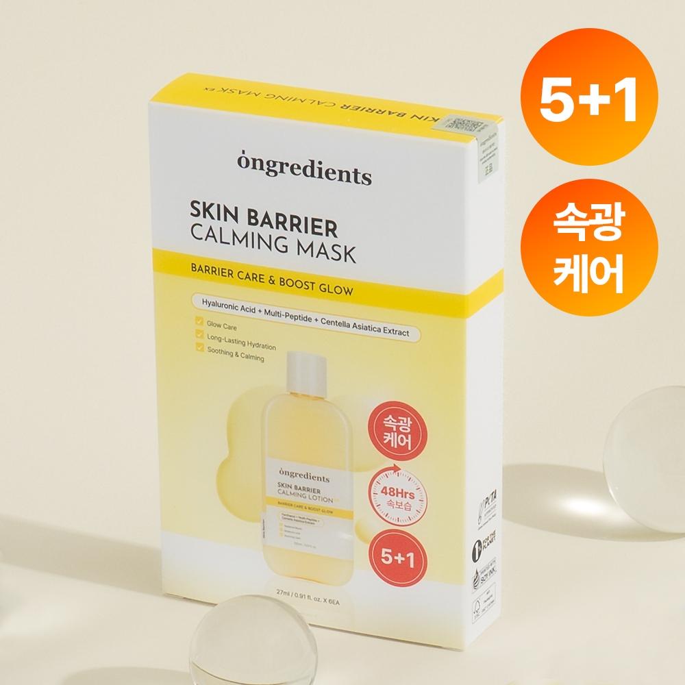 On-Gredients Skin Barrier Calming Mask Pack 5pcs (+1 Free Gift) is a sheet mask specialized for achieving radiant skin. This mask is suitable for all skin types and has received a 100% satisfaction rating for 48-hour moisture retention and a 100% rating for calming effects. It strengthens and protects the weakened skin barrier and is recommended by makeup professionals. The texture offers a high level of hydration while feeling lightweight, providing a moist glow.