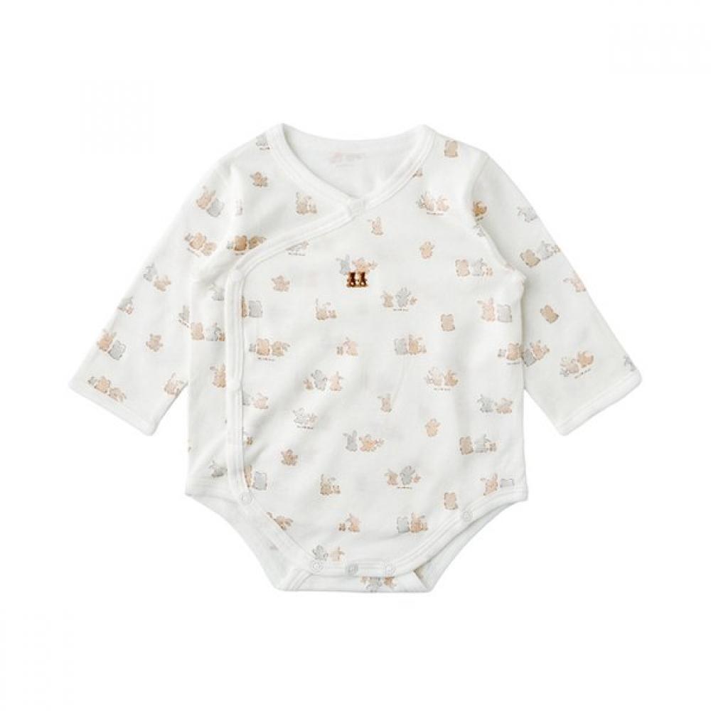 The Friends Bodysuit from Minkmu is part of the COZY COTTON line, featuring an easy-to-use cap dot style for convenient dressing. Made with lyocell fabric, it offers luxurious shine and soft touch, while its adorable bear and rabbit patterns make it suitable as a gift for new parents.