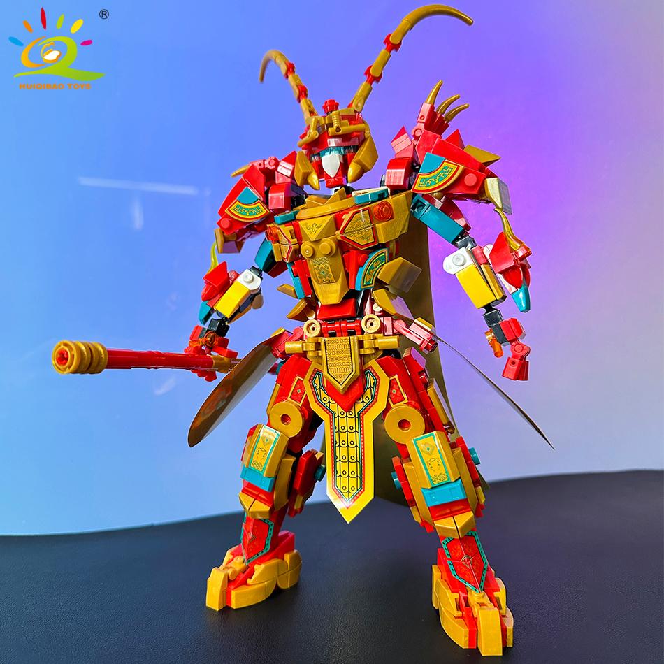 HUIQIBAO Moc Monkey King Series Wukong Mecha Building Blocks Bricks Assembling Construction Toys for Children and Boys Gifts