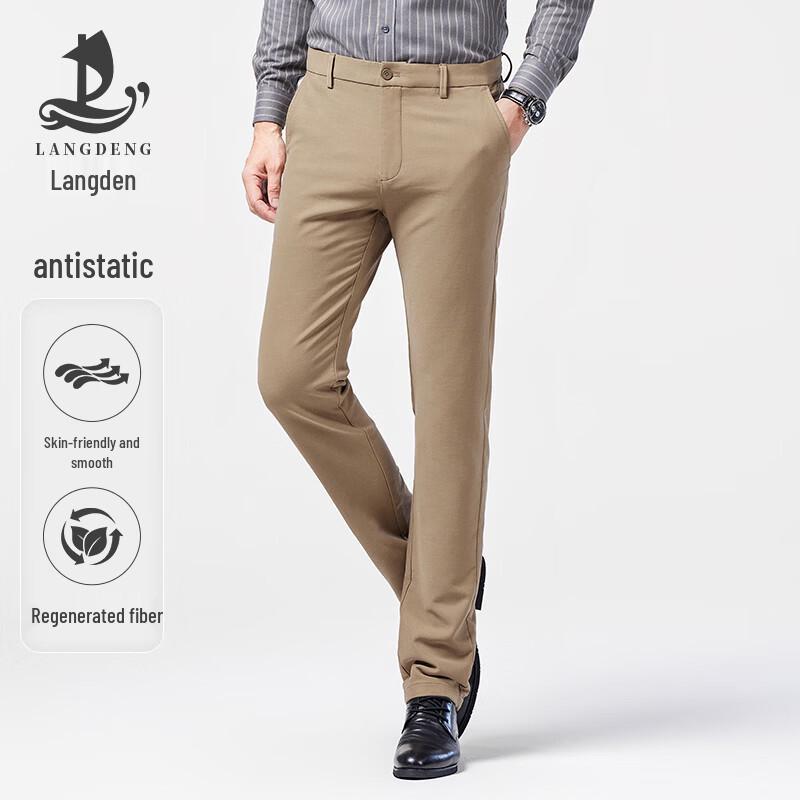 Langdeng Men's Winter Straight-Leg Business Casual Pants