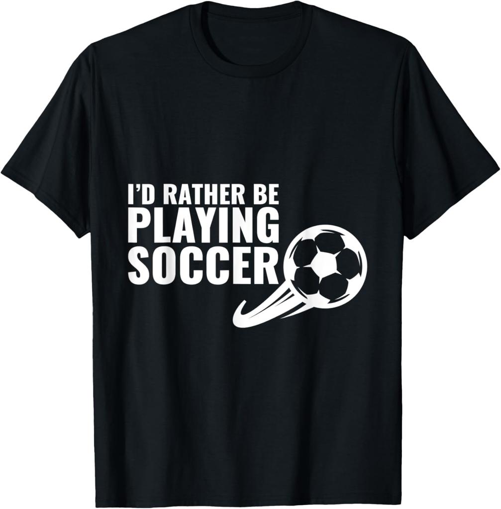 Id Rather Be Playing Soccer Graphic Tee Comfortable Cotton Casual Short Sleeve TShirt for Men